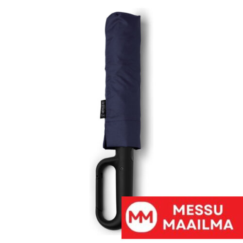 Taittuva RPET-materiaalista valmistettu sateenvarjo, jossa automaattinen avautuminen ja sulkeutuminen. 190T pongee-kangasta. Lasikuitutangot, joissa lumimyrskysuoja ja integroitu karbiinihaka. Tarranauhakiinnitys. Mukana yhteensopiva suojus.