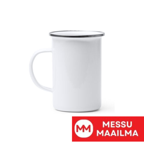 Emaloitu metallinen korkea muki, jossa on sublimaatiopinnoite. Tilavuus: 380 ml. Pakkaus valkoisessa rasiassa.