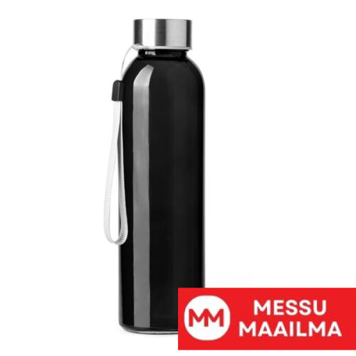 Lasikuvioinen pullo. Tilavuus 500 ml. Saatavilla useissa eri väreissä, ruostumattomasta teräksestä valmistetulla kierrekorkilla. Helppo kantaa hihnan ansiosta, väri harmaa.