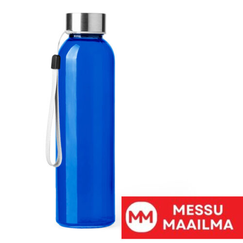 Lasikuvioinen pullo. Tilavuus 500 ml. Saatavilla useissa eri väreissä, ruostumattomasta teräksestä valmistetulla kierrekorkilla. Helppo kantaa hihnan ansiosta, väri harmaa.