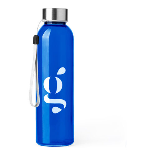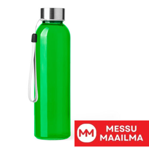 Lasikuvioinen pullo. Tilavuus 500 ml. Saatavilla useissa eri väreissä, ruostumattomasta teräksestä valmistetulla kierrekorkilla. Helppo kantaa hihnan ansiosta, väri harmaa.