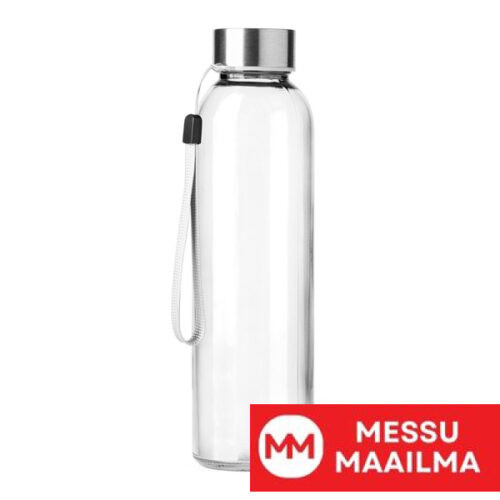 Lasikuvioinen pullo. Tilavuus 500 ml. Saatavilla useissa eri väreissä, ruostumattomasta teräksestä valmistetulla kierrekorkilla. Helppo kantaa hihnan ansiosta, väri harmaa.