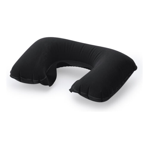 Puhallettava matkatyyny pehmeällä mokkanahalla.