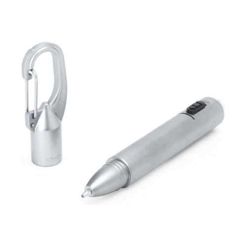 Kuulakärkikynä LED-taskulampulla, saatavilla eri metalliviimeistelyväreissä ja mustalla painikkeella. Korkissa sisäänrakennettu karbiinihaka. Sininen mustetäyttö.