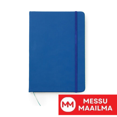 A5-kokoinen muistikirja keinonahkakannella. Kirjanmerkki ja kuminauha. 100 viivoitettua sivua.