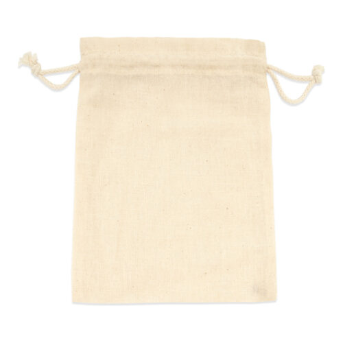 Kiristysnyörillä varustettu kassi, joka on valmistettu 105 g/m² puuvillasta.