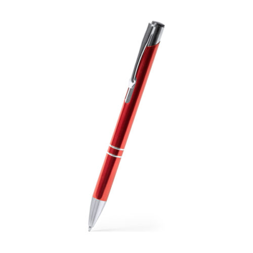 Kuulakärkikynä, jossa on alumiinirunko ja anodisoitu painike. Jumbo-täyttöpakkaus sinisellä musteella.