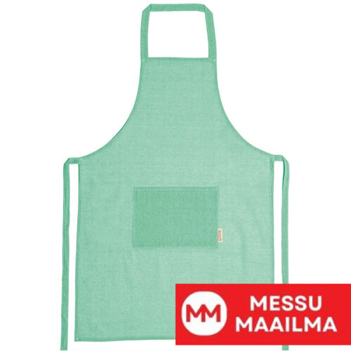 Kierrätetystä puuvillasta valmistettu esiliina, jossa meleerattu pinta. Etutasku. Yksi koko säädettävissä.