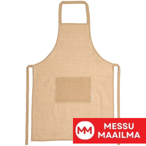 Kierrätetystä puuvillasta valmistettu esiliina, jossa meleerattu pinta. Etutasku. Yksi koko säädettävissä.
