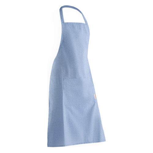 Kierrätetystä puuvillasta valmistettu esiliina, jossa meleerattu pinta. Etutasku. Yksi koko säädettävissä.