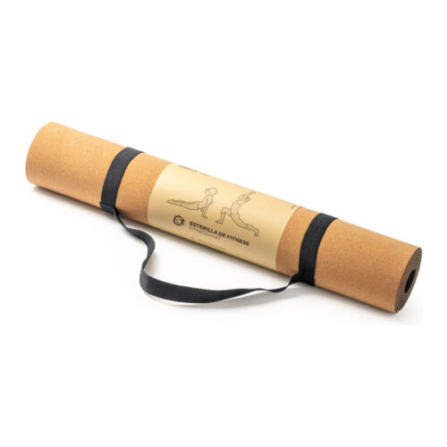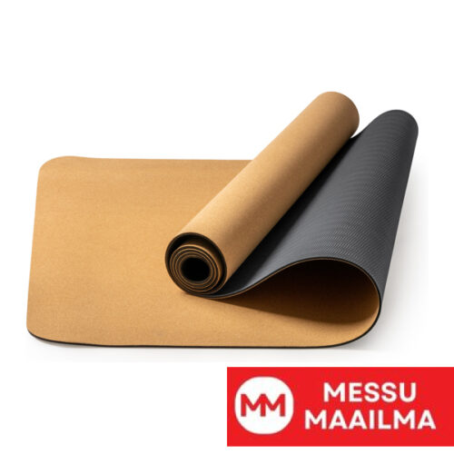 Luonnonkorkista valmistettu joogamatto, jossa liukumaton pohja ja kantohihna.