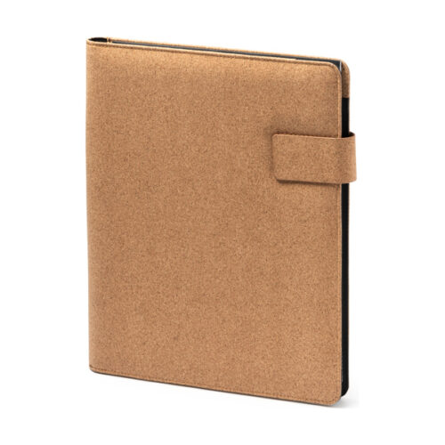 Monikäyttöinen A4-kansio luonnonkorkista, magneettilukko. Irrotettava 30 arkin viivoitettu lehtiö, neljä sisätaskua ja kynäteline.