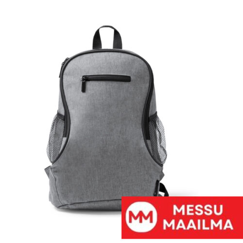 Reppu 300D RPET -materiaalista. Pää- ja etutasku vetoketjulla. Pehmustetut kahvat ja mikrorei’itetyt sivutaskut.