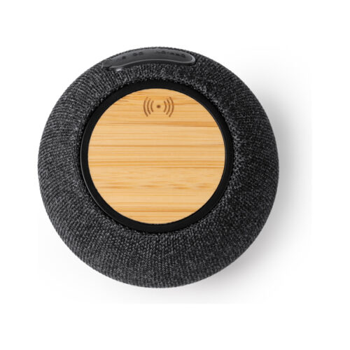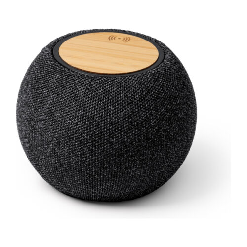 Langaton kaiutin, jossa bamburakenne ja kierrätetty RPET-polyesteri. 5 W:n teho ja sisäänrakennettu 15 W:n langaton laturi. C-tyypin liitäntä. Kaapeli sisältyy hintaan. Toimitetaan ekologisessa laatikossa.