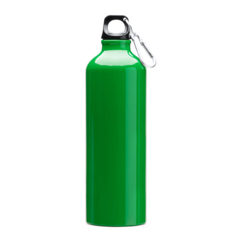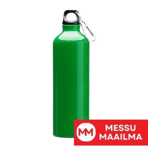 Alumiininen pullo karbiinihaalla, tilavuus 800 ml, täydellinen mukaan otettavaksi. Valkoinen väri sopii sublimoimiseen.