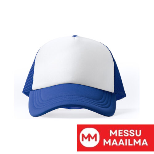 5-paneelinen polyesterilippis, jossa on pehmustettu etupaneeli, valkoinen väri. Verkkokangasta selkäpuolella ja säädettävä kiinnitys.