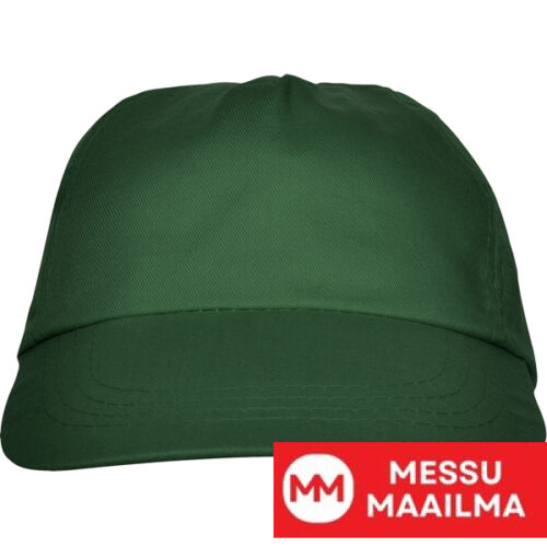 5-paneelinen lippis, jossa kaksi kirjailtua tuuletusaukkoa. Neljä tikkiä lippaassa. Sisäpuolella hikinauha. Tarranauhakiinnitys.