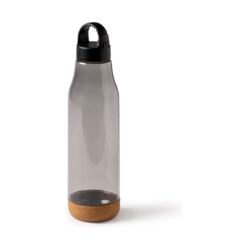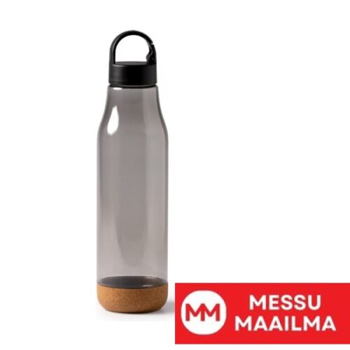 Pullo, jossa RPET-runko ja korkkipohja. Kantokahva ja karbiinihaka kannessa. Tilavuus: 720 ml. Pakkaus ekologisessa rasiassa.