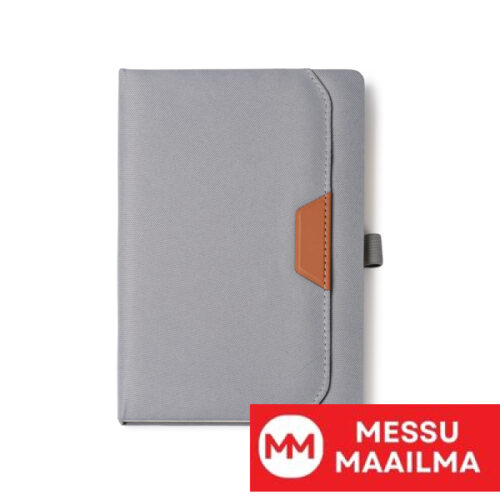 A5-kokoinen muistivihko, jossa on 600D RPET -kovat kannet ja PU-muovia, jossa ulkotasku. Sisältää kynätelineen. 80 viivoitettua arkkia, à 80 g/m². Ekologisessa design-kannessa.
