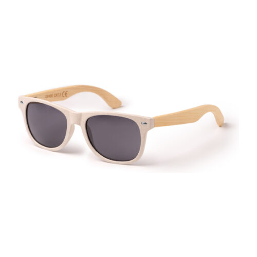 Aurinkolasit, joissa vehnäkuituiset kehykset ja bambusangat. UV400-suojaavat linssit.