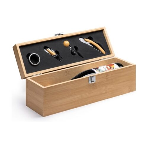 Puinen viinipullokotelo on täydellinen lisä viinipullon kuljetukseen ja esillepanoon tyylikkäällä tavalla. Puusta valmistettu kotelo tarjoaa turvallisen suojan ja hienostuneen ilmeen. Kotelossa on erityinen muotoilu, joka sisältää kannen päällä olevan viinisetin. Tämä sarja koostuu ruostumattomasta teräksestä valmistetuista lisävarusteista, kuten korkkiruuvista kapselileikkurilla, annostelijasta, tulpasta ja tipparenkaasta. Nämä osat tarjoavat kaikki tarvittavat työkalut viinipullon avaamiseen ja nauttimiseen helposti. Kotelon sisäpuoli on pehmustettu pullon turvallisuuden ja vakauden varmistamiseksi kuljetuksen aikana. Lisäksi sen valmistuksessa käytetty puu tarjoaa lisäsuojaa iskuja ja lämpötilan muutoksia vastaan. Tämä esillepano tekee siitä myös ihanteellisen lahjan viinin ystäville ja viinin kokijoille.