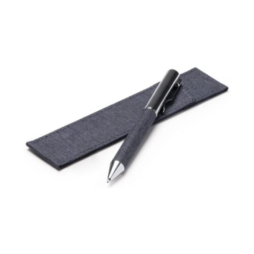 Metallista ja RPET-polyesteriä valmistettu kierrettävä kuulakärkikynä. Sininen muste. Pakattu yhteensopivaan RPET-polyesteripussiin.