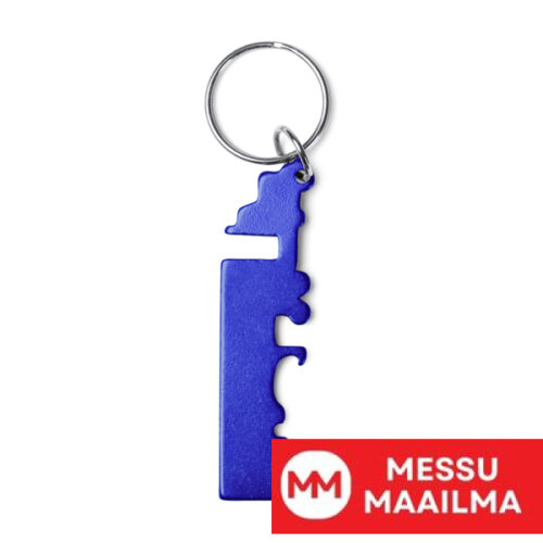 Pullonavaaja-avaimenperä kierrätetystä alumiinista valmistetulla kävelytiellä.