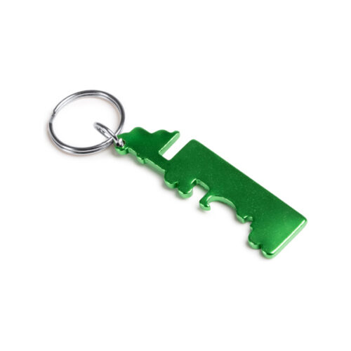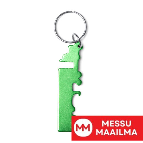 Pullonavaaja-avaimenperä kierrätetystä alumiinista valmistetulla kävelytiellä.