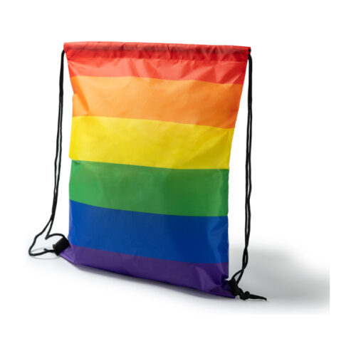 Monivärinen kiristysnyörillä varustettu kassi 210D polyesteriä.