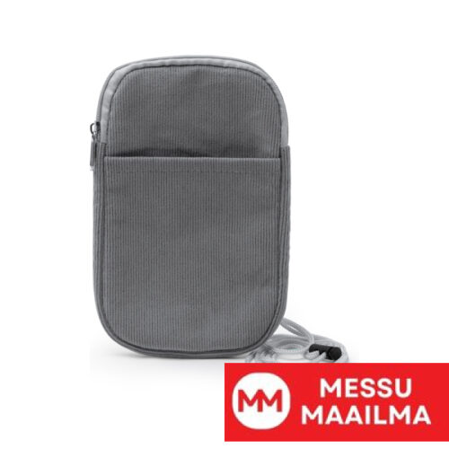 Korduroy-kankaasta valmistettu matkapuhelinteline. Päälokerossa yhteensopiva vetoketju. Ulkotasku. Mukana yhteensopiva kantohihna.