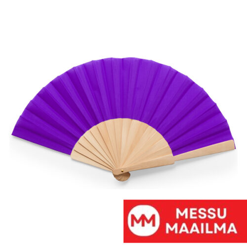 Käsiviuhka, jossa puiset kaaret ja polyesterikangas.