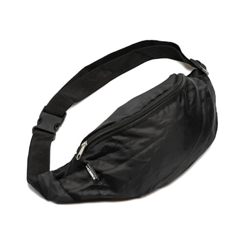 210D RPET-vyötasku, jossa on päälokero ja vetoketjukiinnitys.
