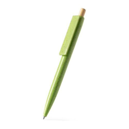 Vehnäkuidusta valmistettu kuulakärkikynä, jossa bambuinen painike. Leveä klipsi sopii erinomaisesti merkkaukseen. Sininen muste.