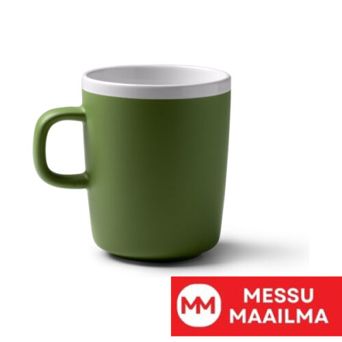 Mattapintainen keraaminen muki, jossa valkoinen ja väriyhdistelmä. Tilavuus: 270 ml. Pakkaus valkoisessa rasiassa.