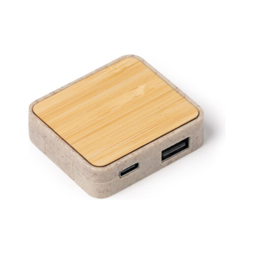 USB-keskitinportti, joka on valmistettu bambusta ja vehnäkuidusta. 2 Type-C-sisääntuloporttia ja 2 USB-porttia. Taittuvat Type-C- ja USB-lähtöportit.