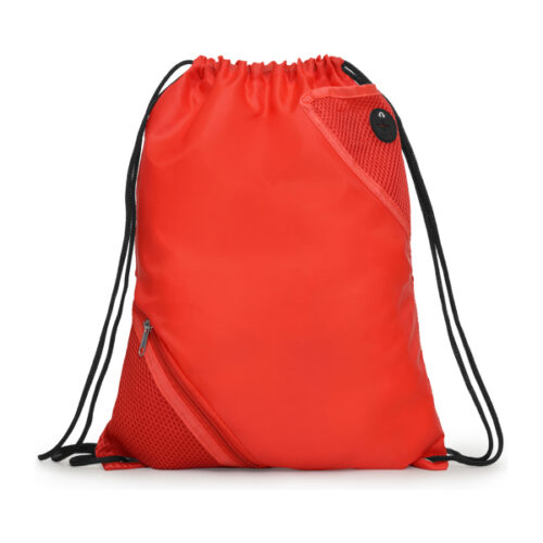 Yleiskäyttöinen kiristysnyörillä varustettu kassi. 1. – Kiristysnyörit. 2. – Metalliset silmukat. 3. – Etutaskut mikrorei’itetystä kankaasta. 4. – Pieni silmukka kaapeleille.