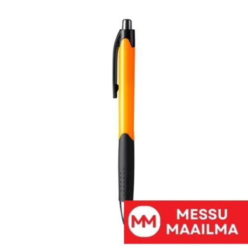 ABS-kuulakynä painonapilla. Runko laajassa värivalikoimassa ja mukava ote. Yksityiskohdat mustat ja metalliset.