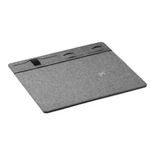 Hiirimatto RPET-muovista, jossa sisäänrakennettu 10 W:n langaton laturi. Mukana kännykkä- ja kynätelineet.