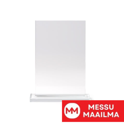 Suorakaiteen muotoinen lasinen palkintopokaali. Mukana musta lahjarasia.