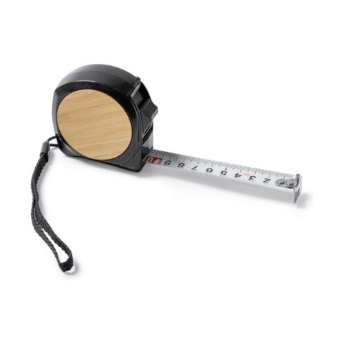 5 metrin fleksometri, jossa lukitusmekanismi ja metallinen koukku. Metallinen klipsi, kantohihna ja bambuiset yksityiskohdat.