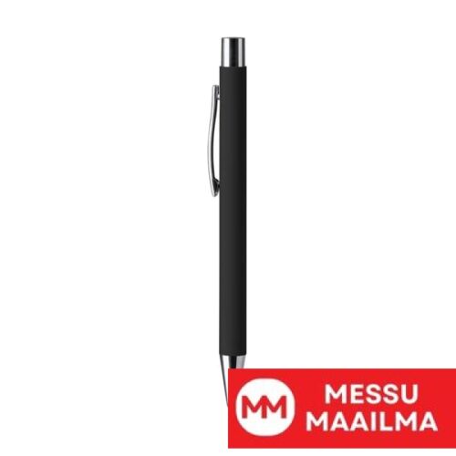 Pehmeäpintainen kuulakärkikynä. Kärki, klipsi ja painike kromattua viimeistelyä. Erityisesti lasertulostukseen.