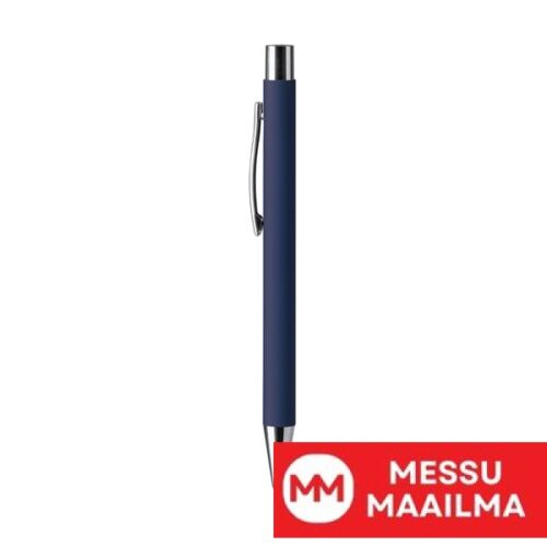 Pehmeäpintainen kuulakärkikynä. Kärki, klipsi ja painike kromattua viimeistelyä. Erityisesti lasertulostukseen.
