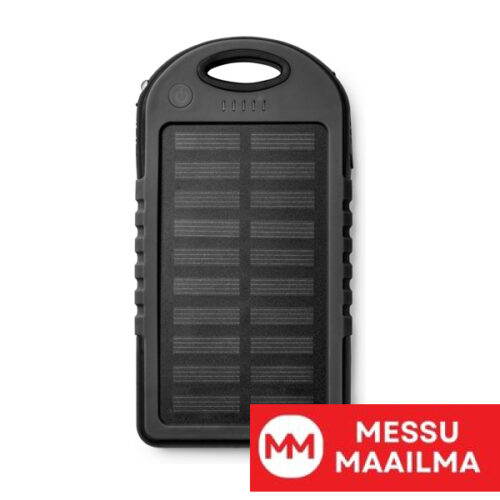 Ulkoinen aurinkokennoakku, roiskevesitiivis ja suurella kuormituskapasiteetilla. 4000 mAh. LED-latausmerkkivalo ja -valo. Virta 5 W / 2,1 A.