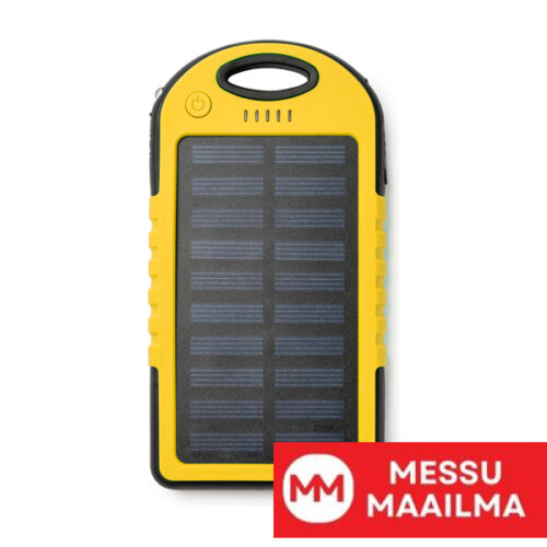Ulkoinen aurinkokennoakku, roiskevesitiivis ja suurella kuormituskapasiteetilla. 4000 mAh. LED-latausmerkkivalo ja -valo. Virta 5 W / 2,1 A.