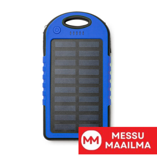 Ulkoinen aurinkokennoakku, roiskevesitiivis ja suurella kuormituskapasiteetilla. 4000 mAh. LED-latausmerkkivalo ja -valo. Virta 5 W / 2,1 A.