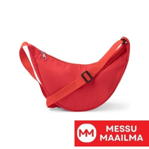 Kierrätetystä vettähylkivästä nailonista valmistettu olkalaukku, jossa on kaksi sisätaskua päälokerossa. Säädettävä hihna.