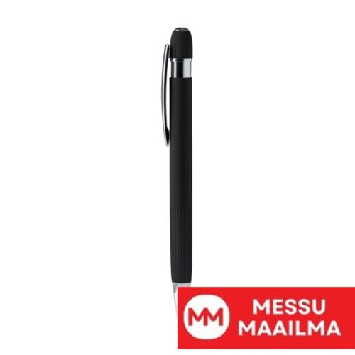 Kynä, jossa on kierrätetystä alumiinista valmistettu runko, raidallinen ote ja mattapintainen kumipinta. Yksityiskohdat kromiviimeistelyä. Jumbo-mustetäyttöpakkaus sinisenä.