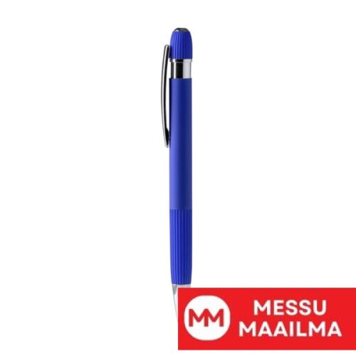 Kynä, jossa on kierrätetystä alumiinista valmistettu runko, raidallinen ote ja mattapintainen kumipinta. Yksityiskohdat kromiviimeistelyä. Jumbo-mustetäyttöpakkaus sinisenä.