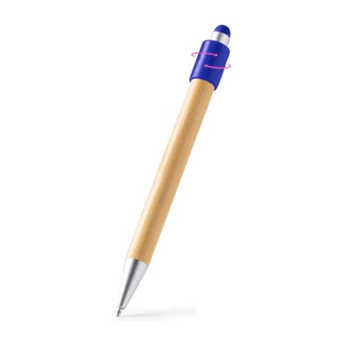Kuulakärkikynä stressinestolla. Bamburunko ja osoitin mattametallisilla yksityiskohdilla. Jumbo-mustetäyttöpakkaus sinisenä.