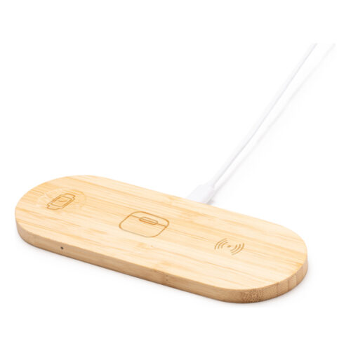 15 W:n 3-in-1-latausalusta, valmistettu bambusta. Älypuhelimen, älykellon ja langattomien kuulokkeiden laturi. C-tyypin liitäntä. Kaapeli sisältyy hintaan. Pakattu ekologiseen laatikkoon.